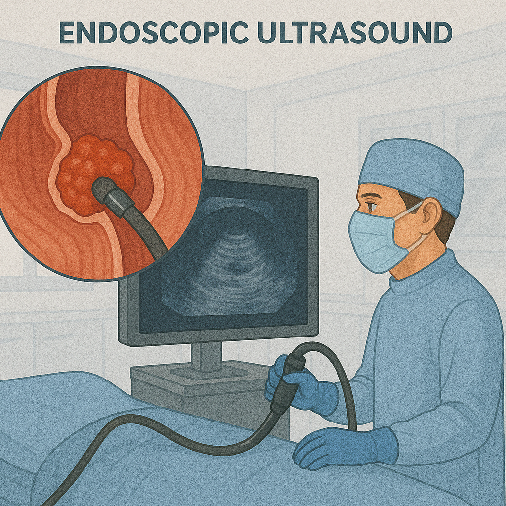 Endoscopic Ultrasound Endoscopic ultrasound is a special scope where the ultrasound transducer is fitted at the tip of the endoscope.