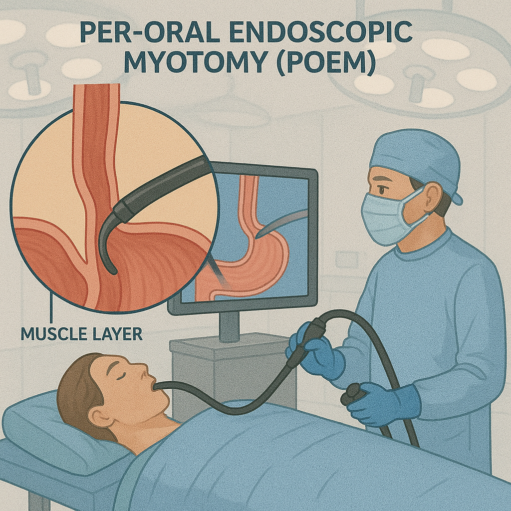Per Oral Endoscopic Myotomy (POEM) is a minimally invasive endoscopic procedure used to treat esophageal motility disorders, primarily achalasia.