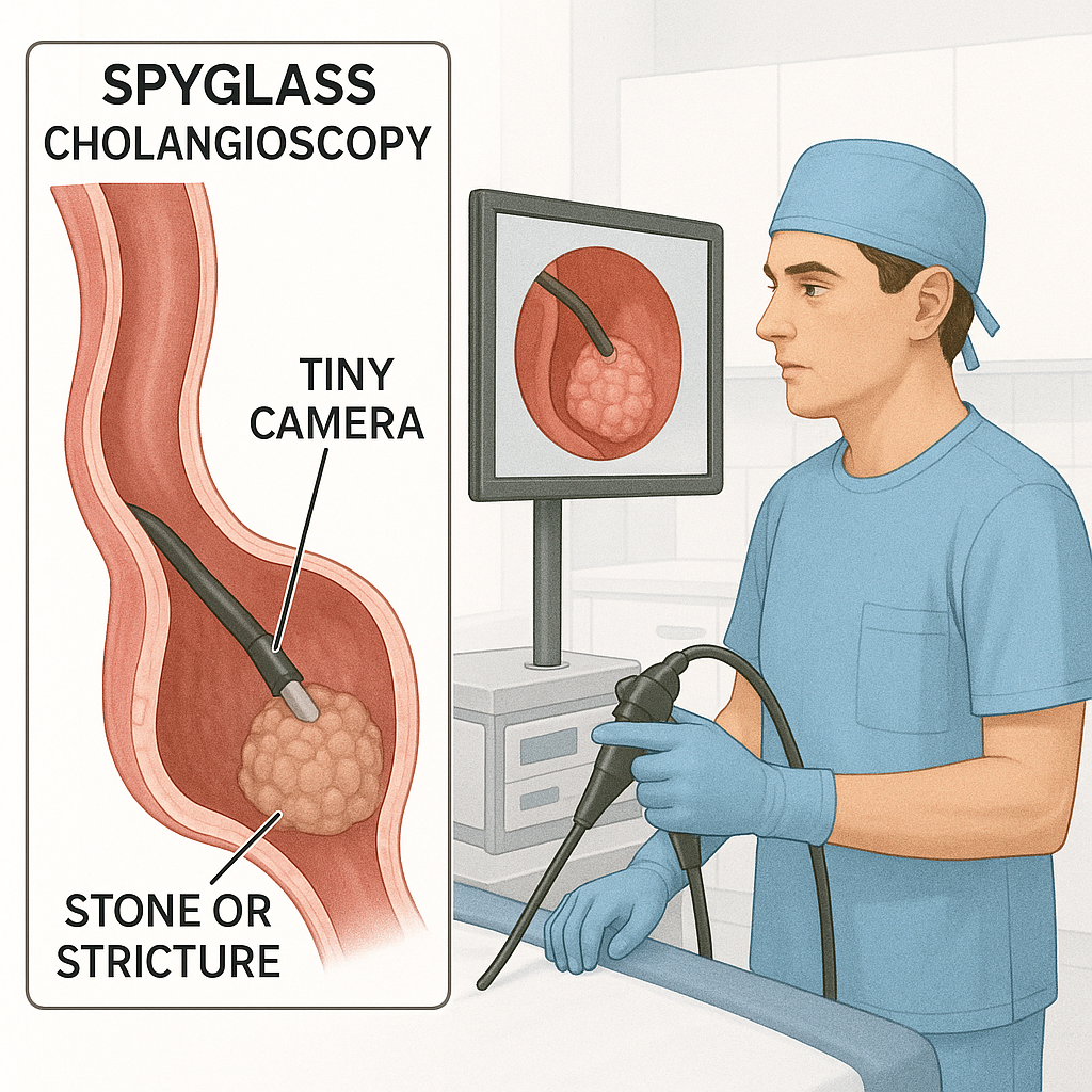 Spyglass Cholangioscope DS System It is used to biopsy bile duct cancers. It helps to break large bile duct stones.
