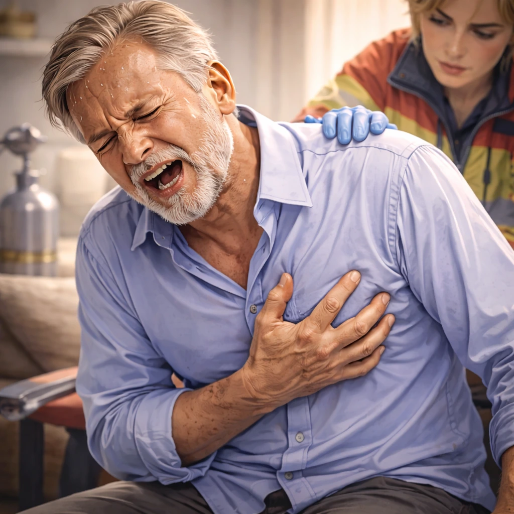 Symptoms include chest pain or pressure, pain radiating to the arm, neck, or jaw, sweating, shortness of breath, and nausea. Immediate medical attention is crucial.