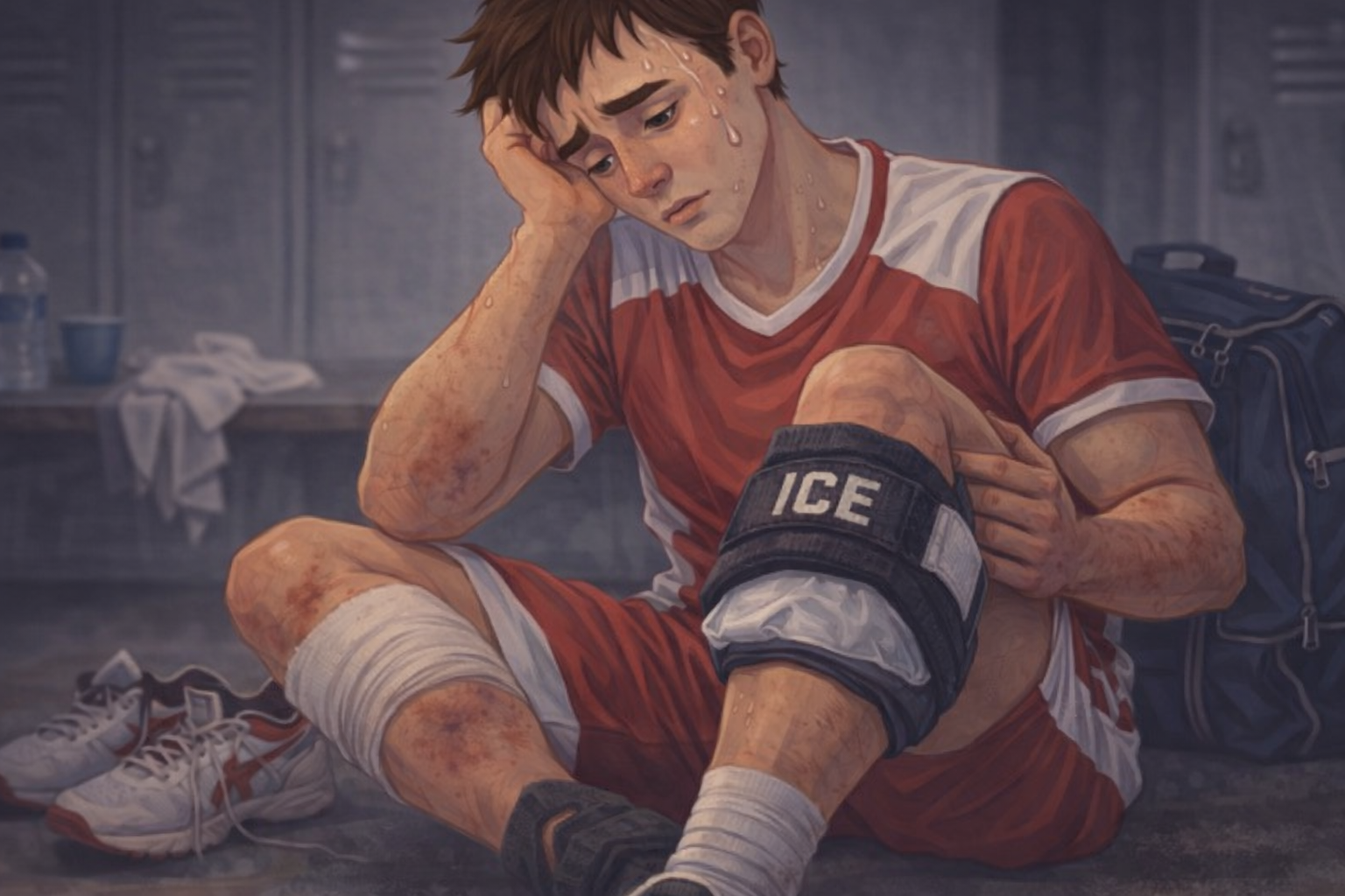 Immobilize the injured area, avoid pressure or movement, apply ice to reduce swelling, and visit the orthopaedic emergency department immediately.
